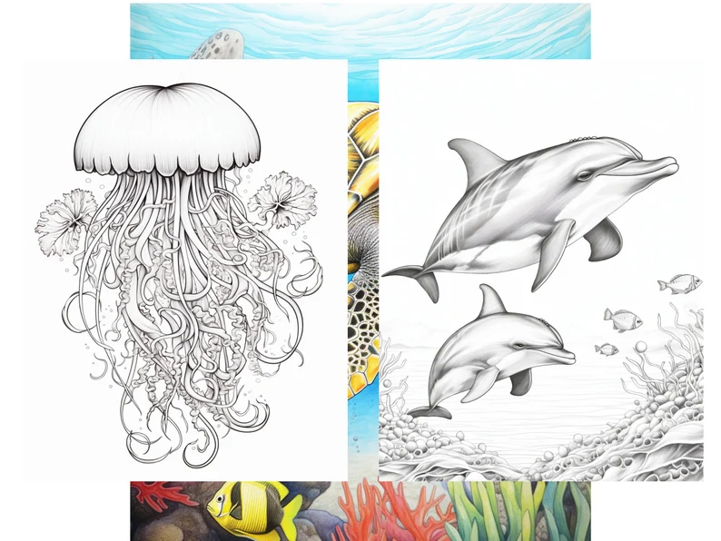 استمتع بجولة فنية في أعماق المحيط مع مجموعة 50 ورقة تلوين لمخلوقات البحر!